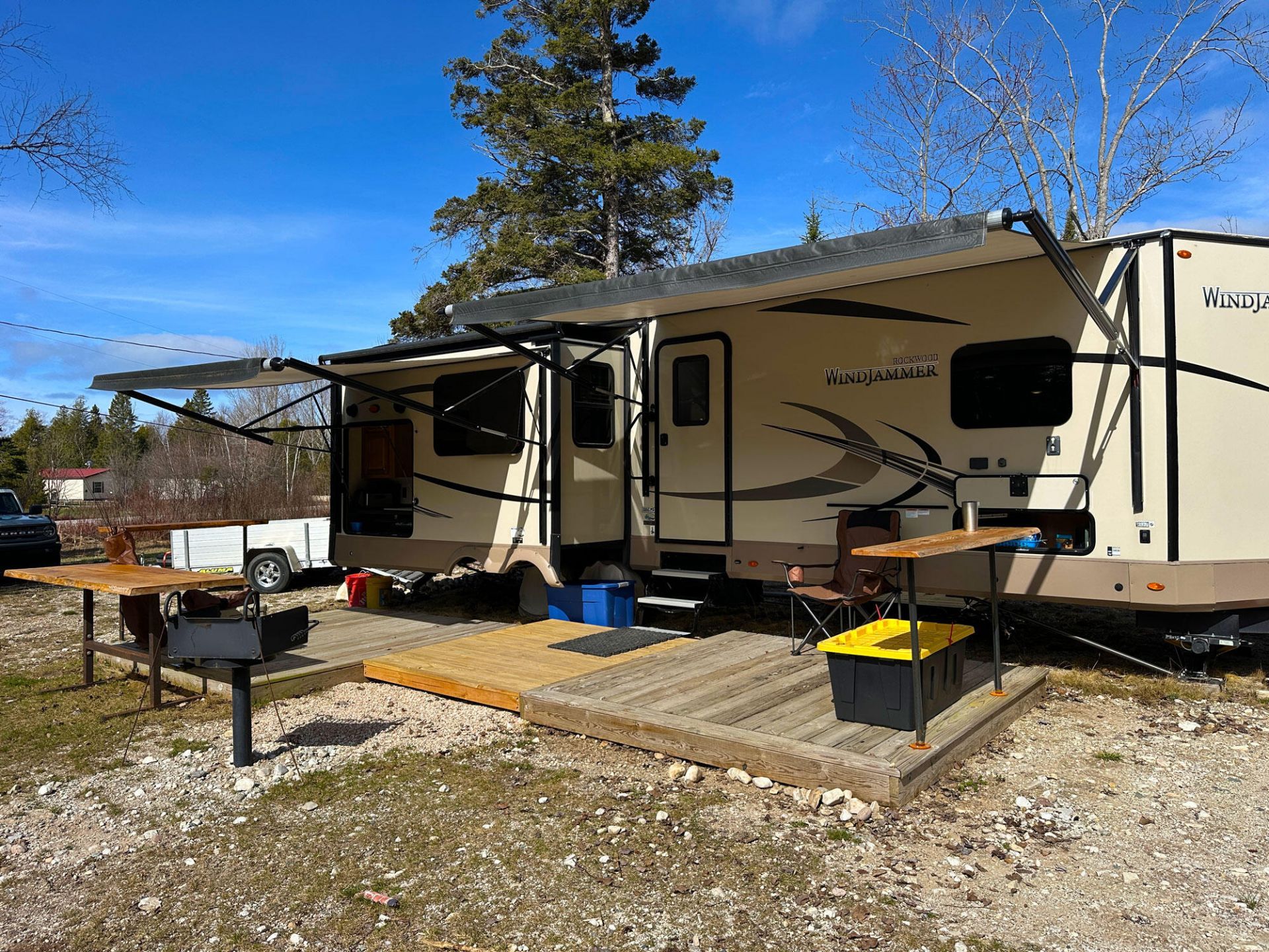This is the perfect base camp for the outdoor enthusiast! Not only does it put you in the heart of our beautiful recreational area, it provides you front door access to lake, trails, hunting, fishing, is turn key & ready for you to enjoy from day one! Waiting for you is an immaculate 2019 Forest River RV with a full kitchen, king bed, 3/4 bath & a pull out sofa, a 20' cargo container, 16' fishing boat with a 45hp motor, new trolling motor & new electronics. 200 amp service all on 28 acres with large trails cut & 3 openings for bow hunting with 2 new double stands & 1 single. You will enjoy views of Brevort Lake & are just up the road from the DNR boat launch for excellent fishing, kayaking, boating and swimming. A new private driveway was installed last fall.